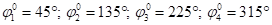 Рассмотрим пример расчета эквивалентных углов для ЛА с 4-мя X-образно расположенными рулями углы установки рулей будут равны: