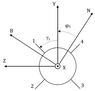 – угол крена i-го руля. Углом крена руля называется угол между осью его вращения и осью ON.