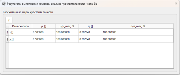 command sens_5p=sensitivity( list( x, y ), list( 0, 0 ), list( 1, 1 ), list( f ), 5, comStaticEquilibrium );