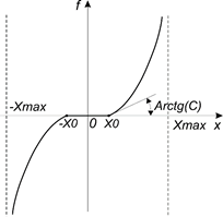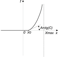 Функция имеет один аргумент и представляет собой гиперболическую кривую, характеризующуюся масштабным коэффициентом и положением начальной точки и вертикальной асимптоты. Функция может использоваться, в частности, для задания упругой характеристики отбойника.При положительных значениях аргумента поведение функции определяется формулой: