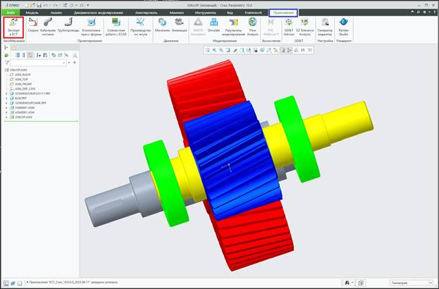 Шаг 1. В уже открытом файле модели в Creo Parametric переходим в раздел ленты Приложения и выбираем пункт Экспорт в ECT (см. рис. 13).