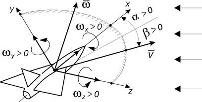Данный метод создает массив датчиков. Тип объекта, создаваемого этим методом, записывается в файле проекта как sensor_array.Массив датчиков представляет собой кинематические параметры обтекания звена Body заданной средой. В качестве звена Body обычно рассматривается летательный аппарат или его отдельные элементы. Массив датчиков включает все основные параметры, которые используются для расчета аэродинамических сил. Схематическое изображение определяемых параметров представлено на рис. 1.