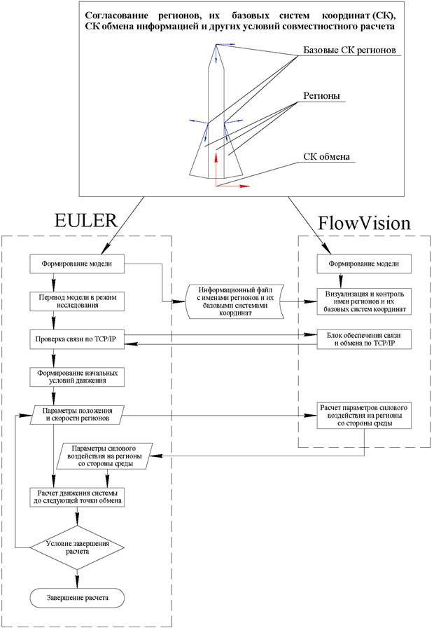 Рис. 1. Структурная схема совместного расчета в EULER и FlowVision