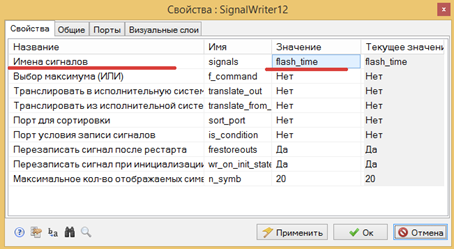 Рис. 32. Свойства блока «Запись в список сигналов»