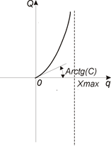 Предполагается, что внутренняя втулка может прокручиваться относительно внешней вокруг продольной оси, если воздействие превышает заданное значение. При приложении сил или моментов по остальным направлениям существуют пределы смещений, поэтому для описания упругих характеристик используется асимптотическая функция, изображенная на рис. 2. Эта функция характеризуется пределом смещения