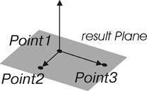 Данный метод создает плоскость, проходящую через три заданные точки Point1, Point2 и Point3. Нормаль плоскости сонаправлена вектору, равному векторному произведению vectorPP(Point1,Point2) и vectorPP(Point1,Point3). Точки Point1, Point2 и Point3 не должны лежать на одной прямой. См. рис. 2.