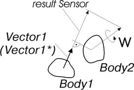 Если именованный параметр fixingVector = unlockVector:, то значением датчика является проекция на вектор Vector1 угловой скорости звена Body2 относительно звена Body1.