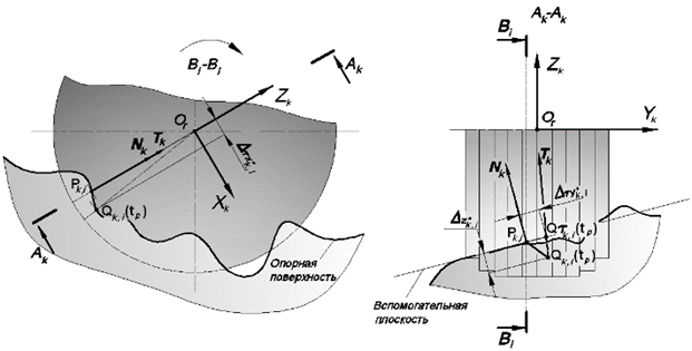 действует на элемент контакта во вспомогательной плоскости и приложена в точке