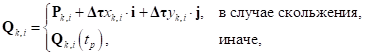 системы координат сектора, а их предельная величина ограничена силой трения между шиной и опорной поверхностью. Ниже приводится алгоритм расчета тангенциальных деформаций и сил элементов протектора: