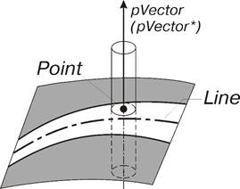 RC = scalar [length]Радиус контактирующего цилиндра; точка Point и вектор pVector* при этом определяют ось цилиндра. Нулевому значению радиуса соответствует прямая. По умолчанию RC = 0 [m].