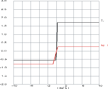 F_d = function [-]<[length / time]>Функция относительной силы нормального демпфирования. Сила нормального демпфирования используется для задания упругопластических свойств контактного взаимодействия. Аргументом функции является составляющая скорости по вектору местной нормали поверхности. При значении аргумента 0[m/s], значение функции должно быть равным 0.