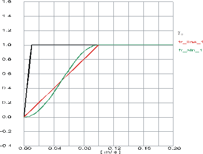 . Или можно задать функцию, в которой переход между состояниями покоя и полным включением силы трения описывается не линейным, а синусоидальным законом. Пример такого задания функций силы трения приведен ниже.