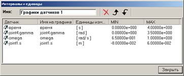 Значения границ интервалов отображения всех датчиков и аргумента можно изменить. При отображении графиков программный комплекс округляет заданные пользователем значения границ интервалов. Это делается таким образом, чтобы интервалы стали больше, а значения границ – удобнее для восприятия.