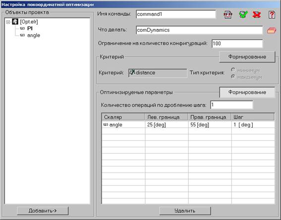 Рис. 3. Окно Настройка покоординатной оптимизации
