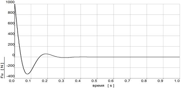 На рис. 3 и рис. 4 представлены графики управляющей силы и положения груза, полученные при расчете модели stabG_EULER.elr, на рис. 5 – совпадающие графики положения груза, полученные при расчете моделей stabG_EULER.elr и stabG_EULER_Simulink.elr.