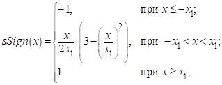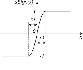 Функция имеет один аргумент и служит, как функция sign(x), для определения знака аргумента, при этом имеет непрерывную гладкую производную. Функция sSign определена следующим образом: