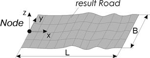 Данный метод создает прямоугольный участок твердой дороги с заданной функцией микропрофиля. Система координат дороги определяется заданным узлом Node. Узел Node должен быть прикреплен к звену. Схематическое изображение участка с микропрофилем представлено на рис. 2.
