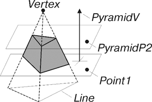 4. Полученные таким образом два плоских сечения являются основаниями пирамиды. Боковая поверхность пирамиды при этом образуется линией, проходящей через точку Vertex.