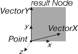 Данный метод создает узел с центром в точке Point и ориентацией, вектор Y которой параллелен вектору VectorY. Вектор X ориентации узла лежит в плоскости, построенной на задаваемых в методе векторах VectorY и VectorX, и направлен в ту же сторону, что и вектор VectorX. Вектор Z выбирается таким образом, чтобы ориентация узла составляла правую тройку. Задаваемые в методе векторы VectorY и VectorX не должны быть параллельными. См. рис. 8.