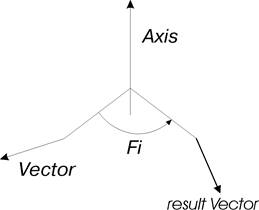 Данный метод создает вектор, который образован поворотом вектора Vector вокруг оси (вектора) Axis на угол Fi.