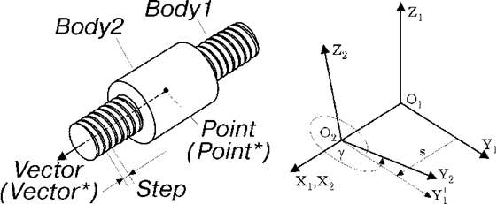 screw(Body1, Body2, Point, Vector, Step, freeze=..., work=..., color=..., visible=...)