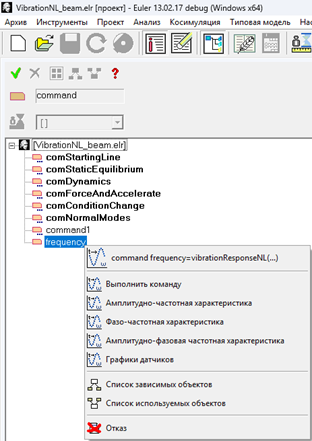 Также для выполнения команды можно выбрать в меню Анализ пункт Вибрационный анализ отклика нелинейной системы /Список команд.