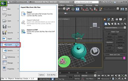 Для того чтобы произвести экспорт сцены из 3ds Max необходимо сделать следующее: