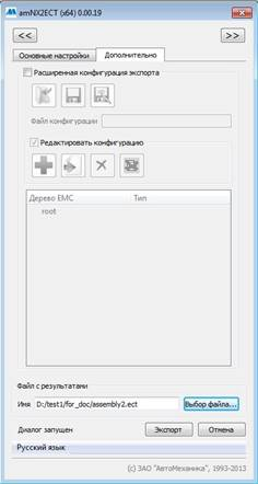 На вкладке «Дополнительно» расположен флажок «Расширенная конфигурация экспорта», который управляет методом экспорта, и инструменты для задания расширенных настроек экспорта (см. рис. 13), которые могут быть сохранены в EMC-файл. Возможны два варианта экспорта: